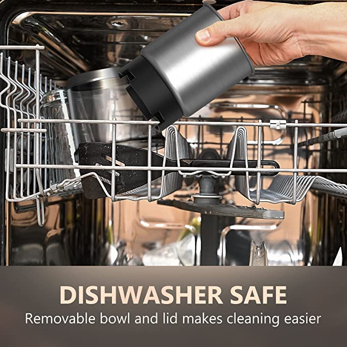 سهولة التنظيف: تحتوي مطحنة القهوة الكهربائية على كوب طحن قابل للإزالة وآمن في غسالة الصحون. مع الوعاء القابل للإزالة ، يمكنك أن تقول وداعًا للعبث. ملاحظة: فقط وعاء الفولاذ المقاوم للصدأ والغطاء الشفاف يمكن غسلهما في غسالة الأطباق